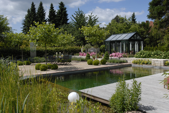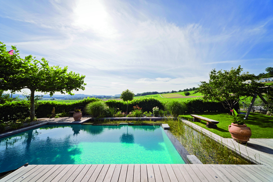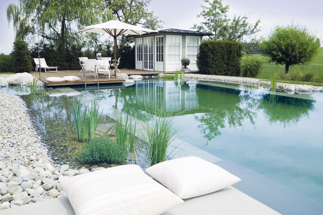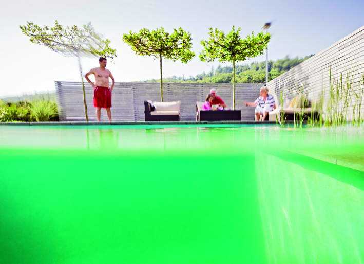 Nach Feierabend in Ihren Schwimmteich eintauchen und das Leben so richtig genießen.