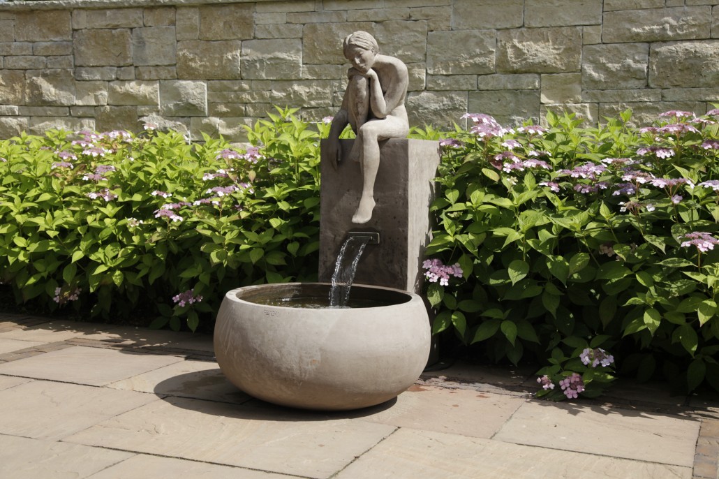 aus Beton, Naturstein, Cortenstahl oder Edelstahl, lassen sich im Garten wie Kunstobjekte einfügen.