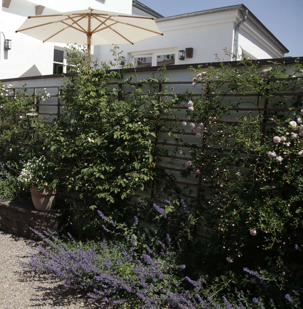 Auch Mauern und Zäune können Gärten in vielseitiger Weise solide umgrenzen und damit ein Höchstmaß an Privatsphäre schaffen. Sie benötigen wenig Raum und können in Hanglagen auch eine Stützfunktion übernehmen. Neben herkömmlichen Mauern und Wänden aus Stein und Holz erobern dabei zunehmend auch neue Materialien wie Cortenstahl, Glas und Kunststoffe den Gartenraum.