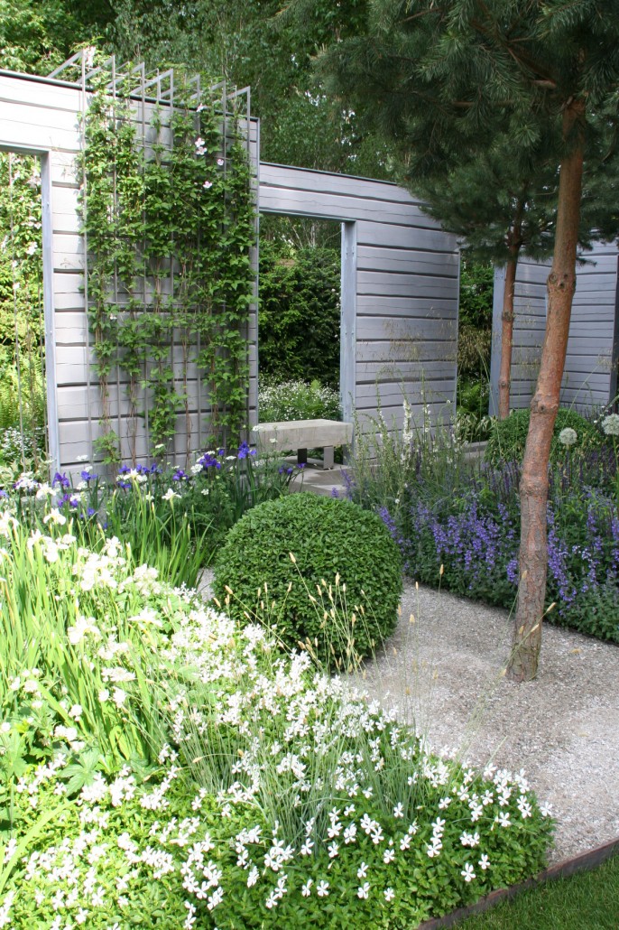 Wir beginnen aber immer mit dem immergrünen "Gehölzgerüst", bevor die sommerblühenden Pflanzen ausgewählt werden.
