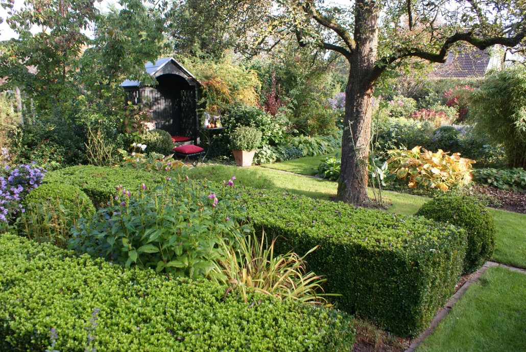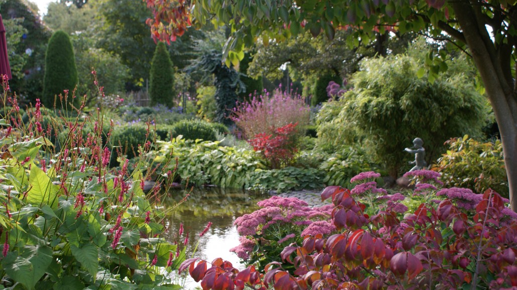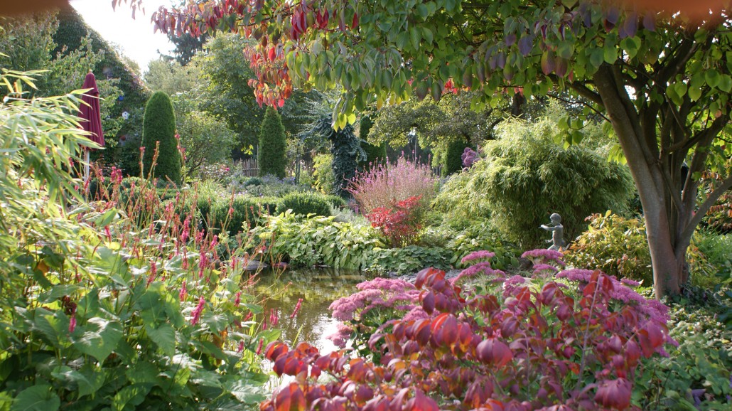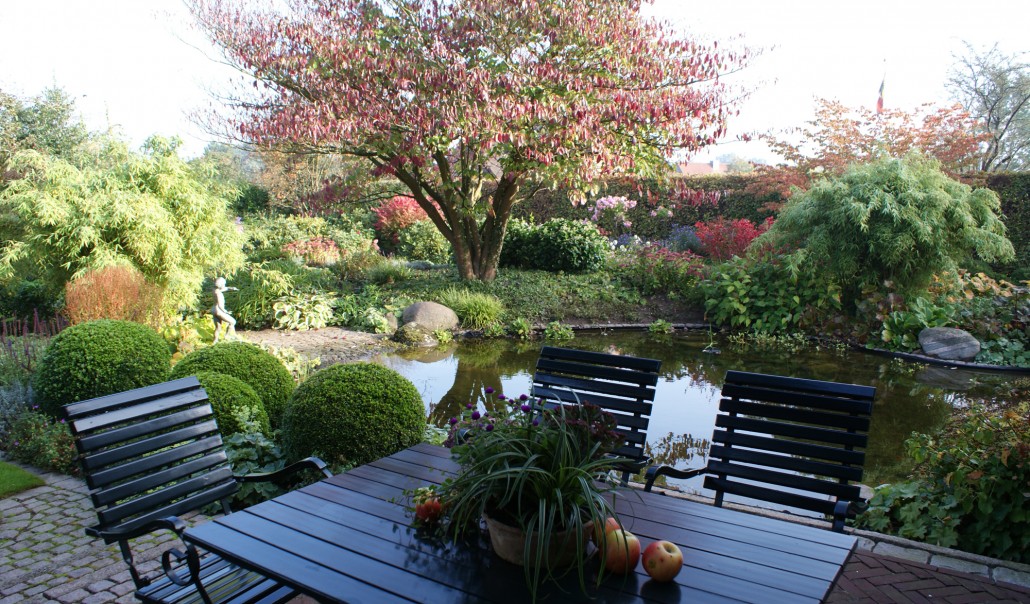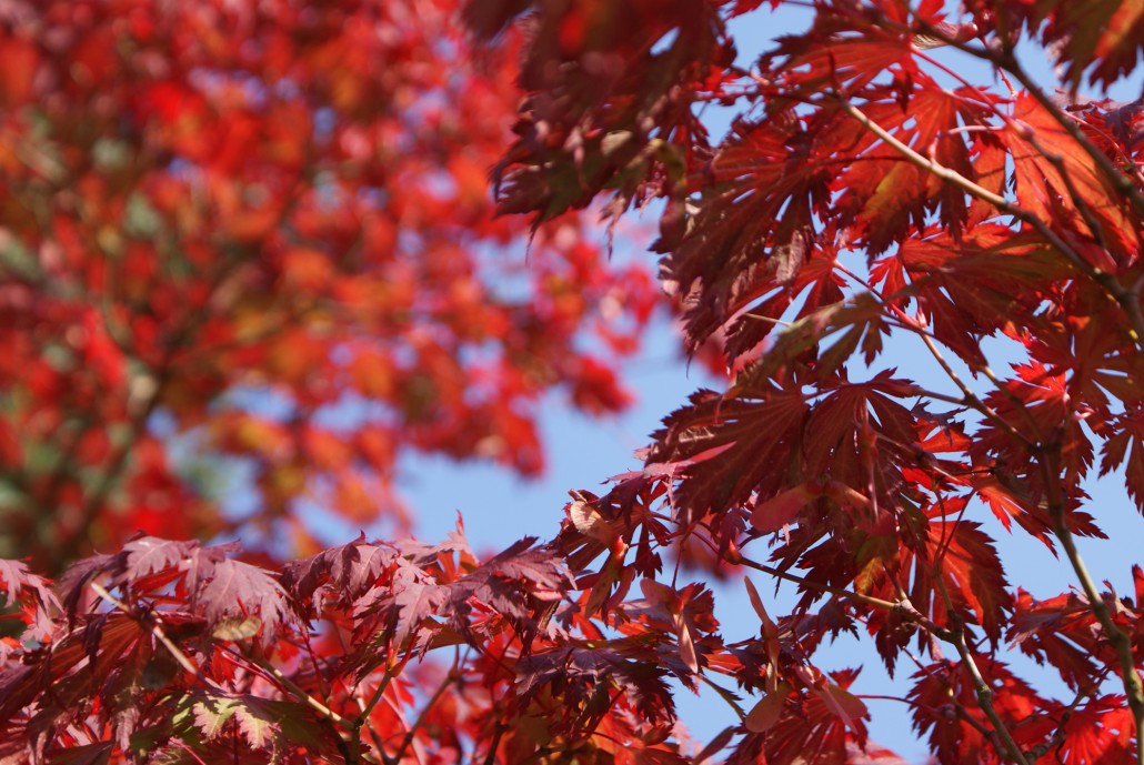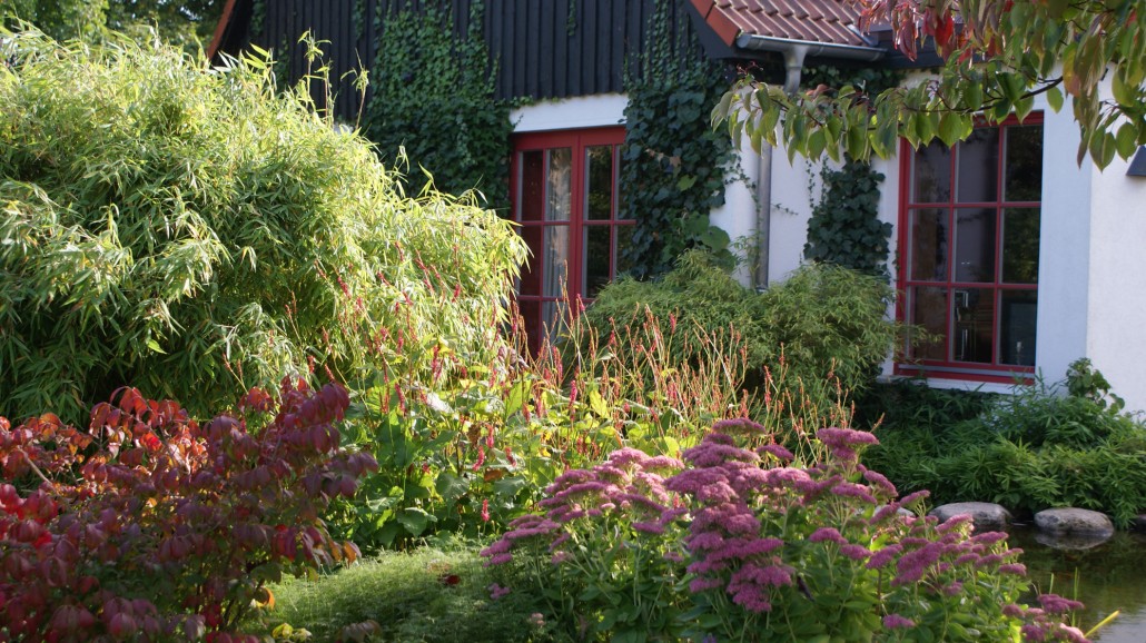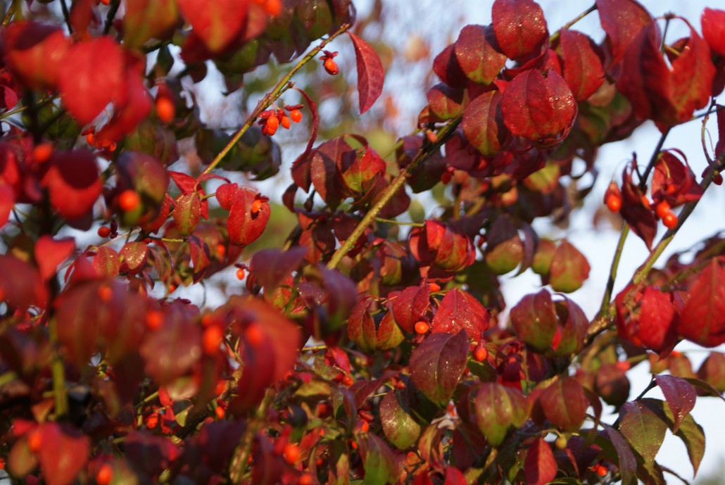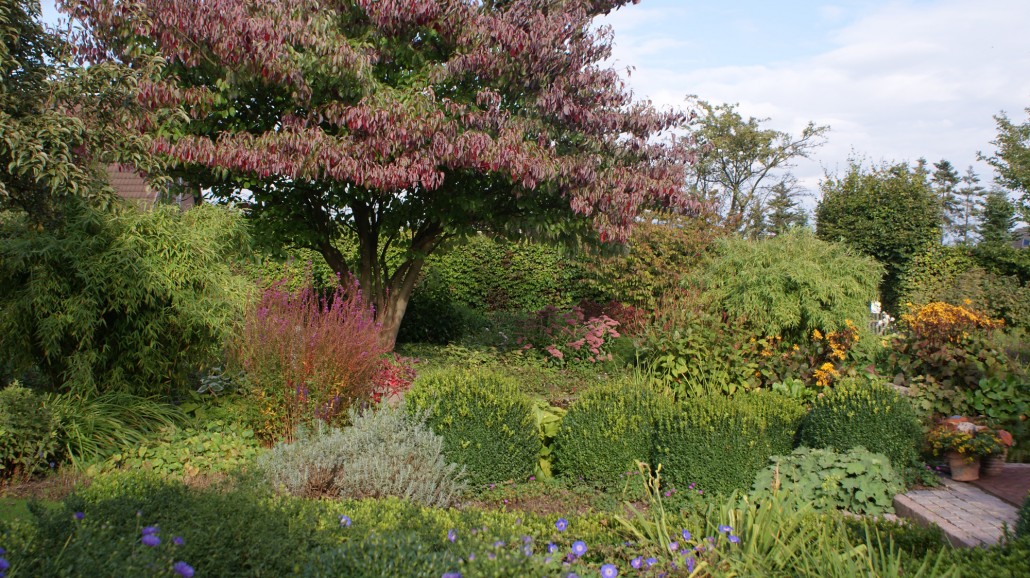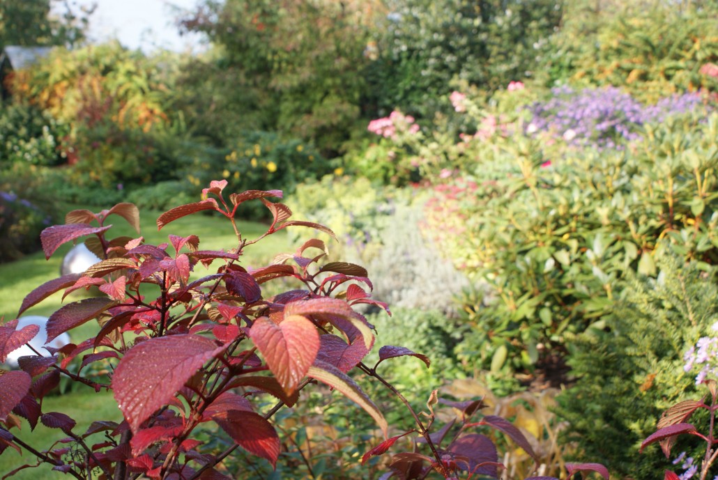 Herbstliche Blüte und Laubfärbung